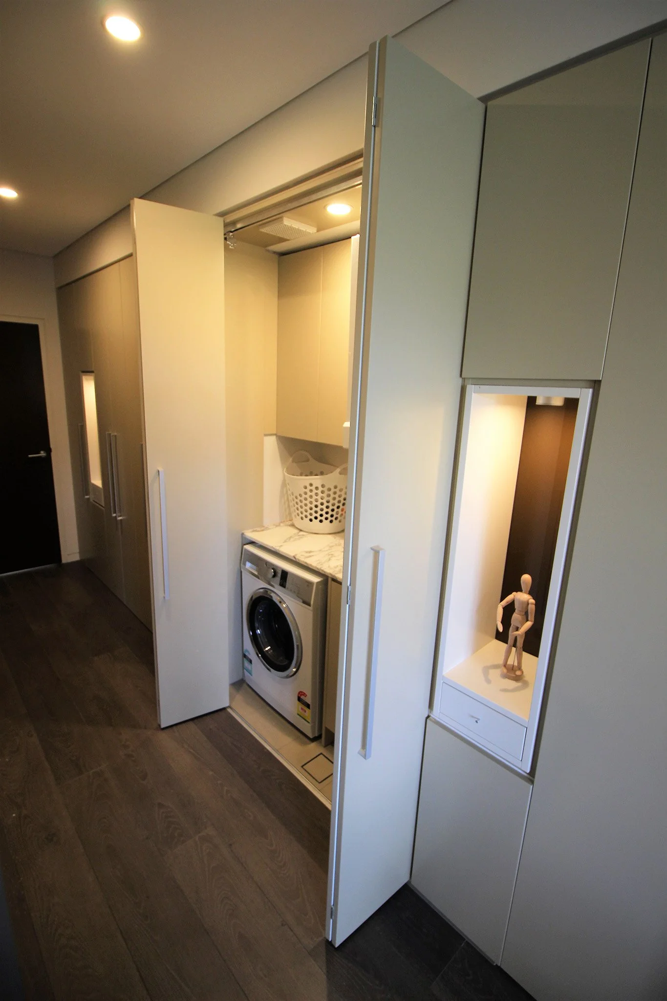We manage everything from design and layout to cabinetry, finishes and installation. Whether it’s hidden in a bathroom, built into a scullery or behind cupboard doors, we make the most of every centimetre—delivering smart, space-efficient solutions that don’t compromise on style.